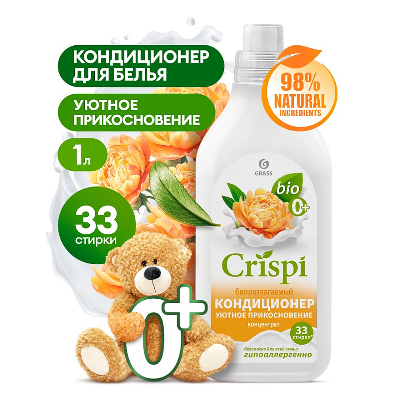 CRISPI Кондиционер-ополаскиватель для стирки концентрированный Уютное прикосновение (флакон 1000 мл)